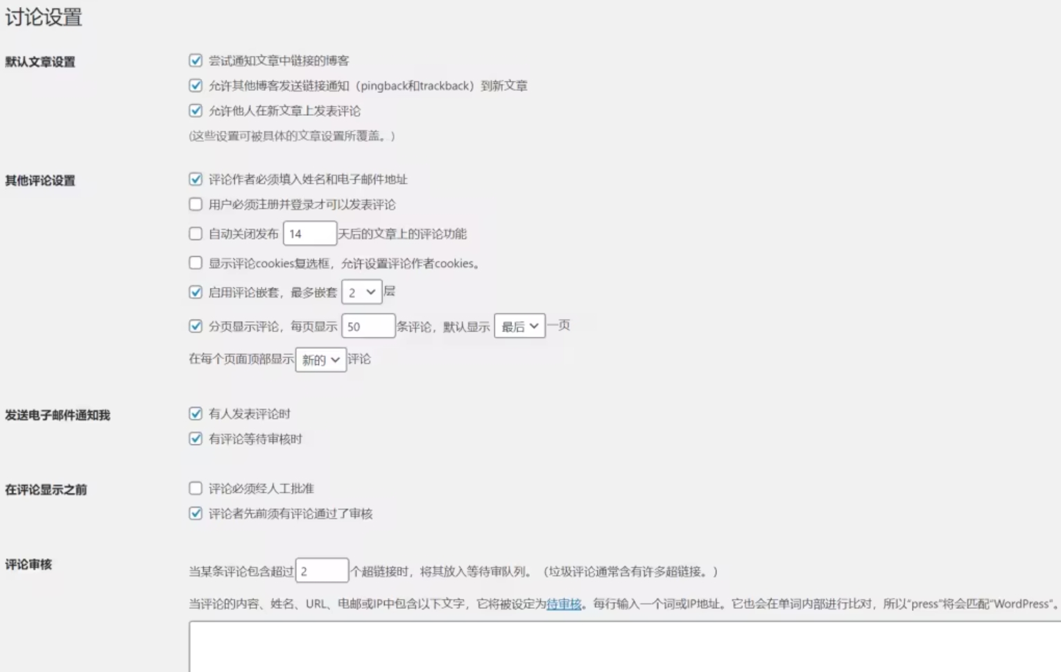 要收到等待审核评论的电子邮件(重要的是,您可以进行审核并迅速批准或丢弃它),请选中“发送电子邮件通知我……有评论等待审核时”选项。
